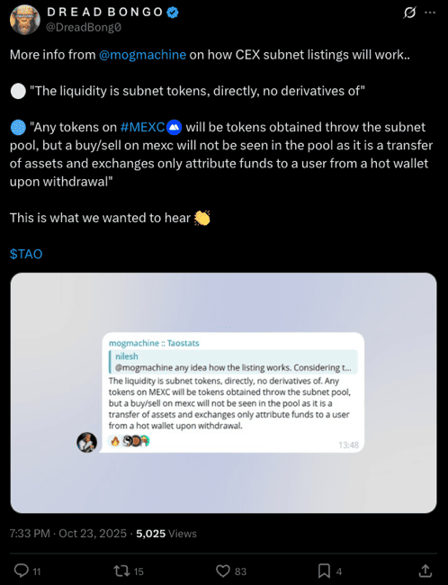 Важные подробности, ибо листинг сабнета — невероятно важное событие. Это технически оч. сложно, у сабнетов еще вчера не было токенов, ЛОЛ