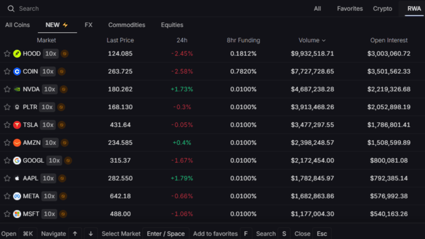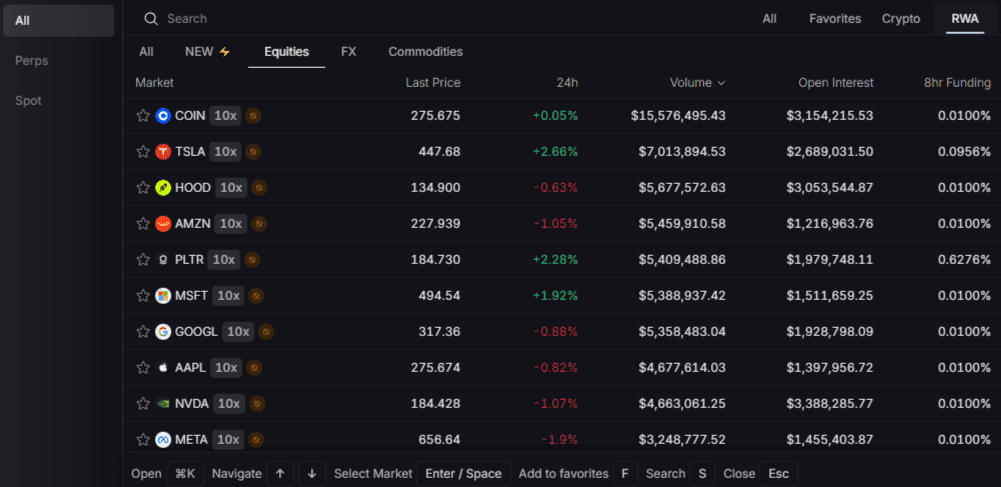 5. Торговля без комиссий — все хорошо, открывается/закрывается без проскальзываний и глюков. но есть нюансы. каждый день в период высокой волатильности по крипте (первые два часа работы Америки) бывают задержки по исполнению до 2 секунд. при этом rwa раздел в этот период времени работает стабильно.