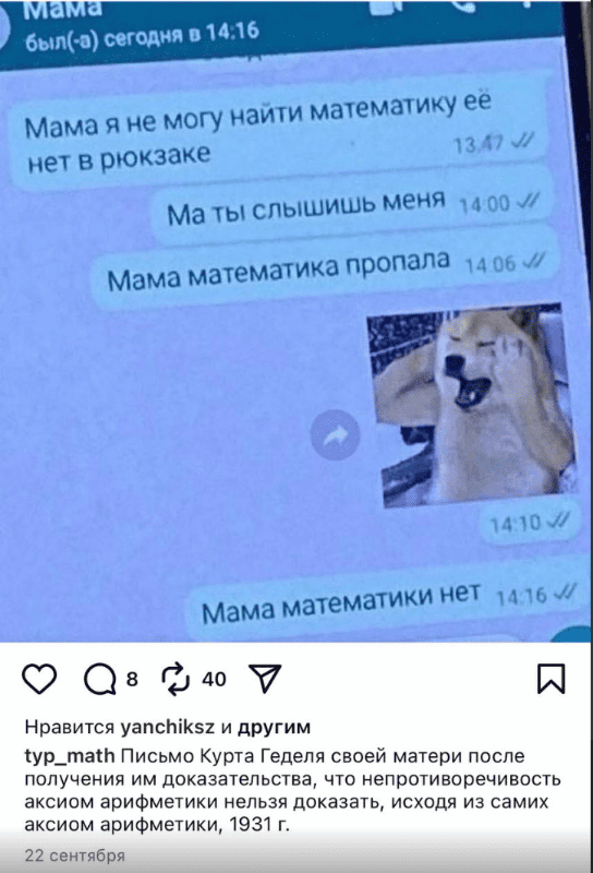 — ни а если, математика не занимается вопросами цветов, а миф не занимается вопросами истины.