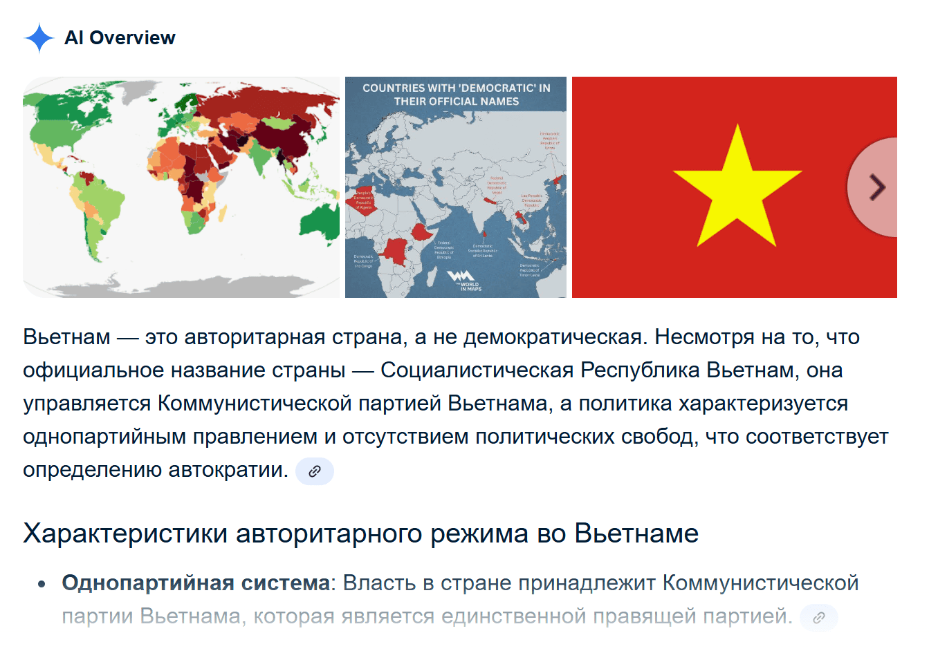 Risky Давно я ждал этого вопроса. Вот удивительно, но Авторитаризм во Вьетнаме и в РФ очень сильно отличается. Я не люблю коммунистов конечно, но местные коммунисты крайне, крайне демократичны по отношению к своему населению и туристам.