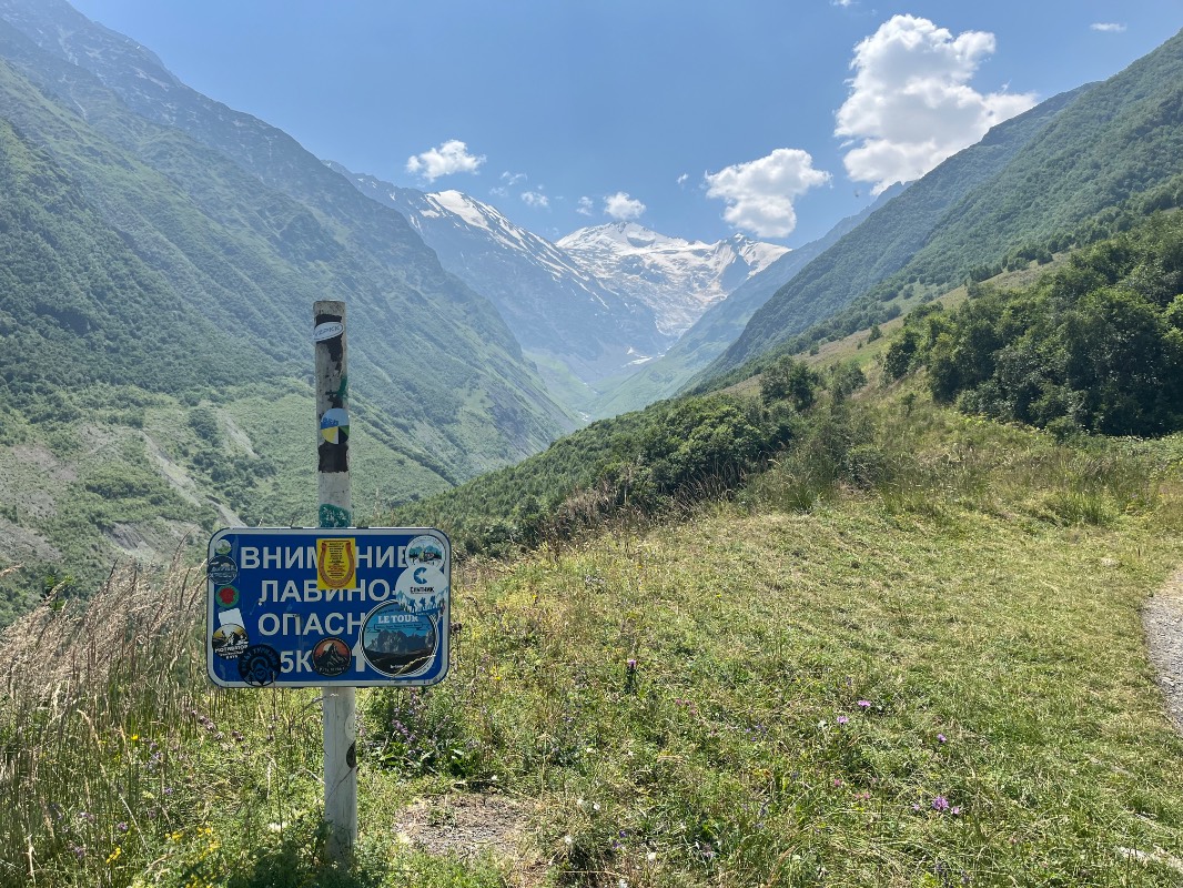 Казбек стоит ровно на границе, и тропинка соединяется перед вершиной с обоих сторон.