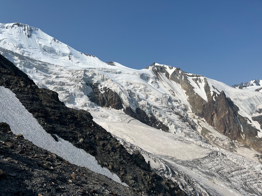 Ледники перед вершиной имеют трещины, потому нужно организовывать связки (невозможно, если соло)