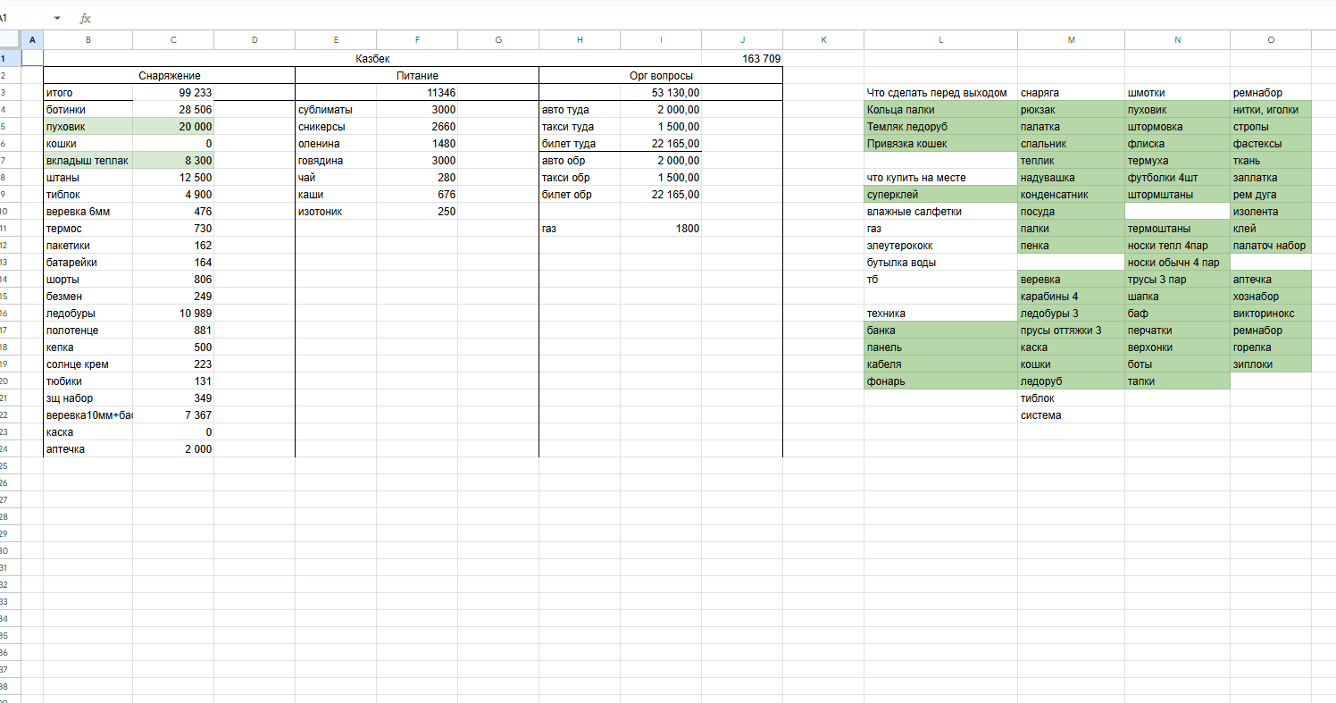Вот список примерно чего брал, чего покупал и чего по баблу
