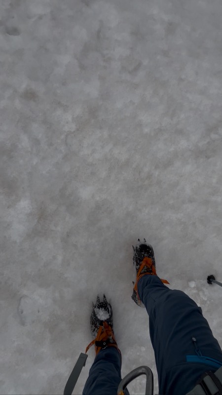 Перед «взлетом» на седловину я убрал палку и достал ледоруб- градус слишком высокий, началось лазание по снегу.
