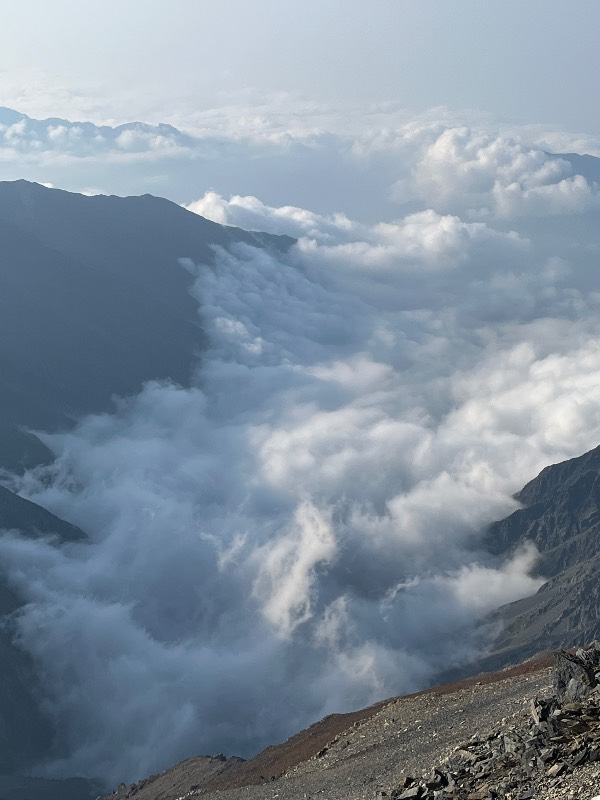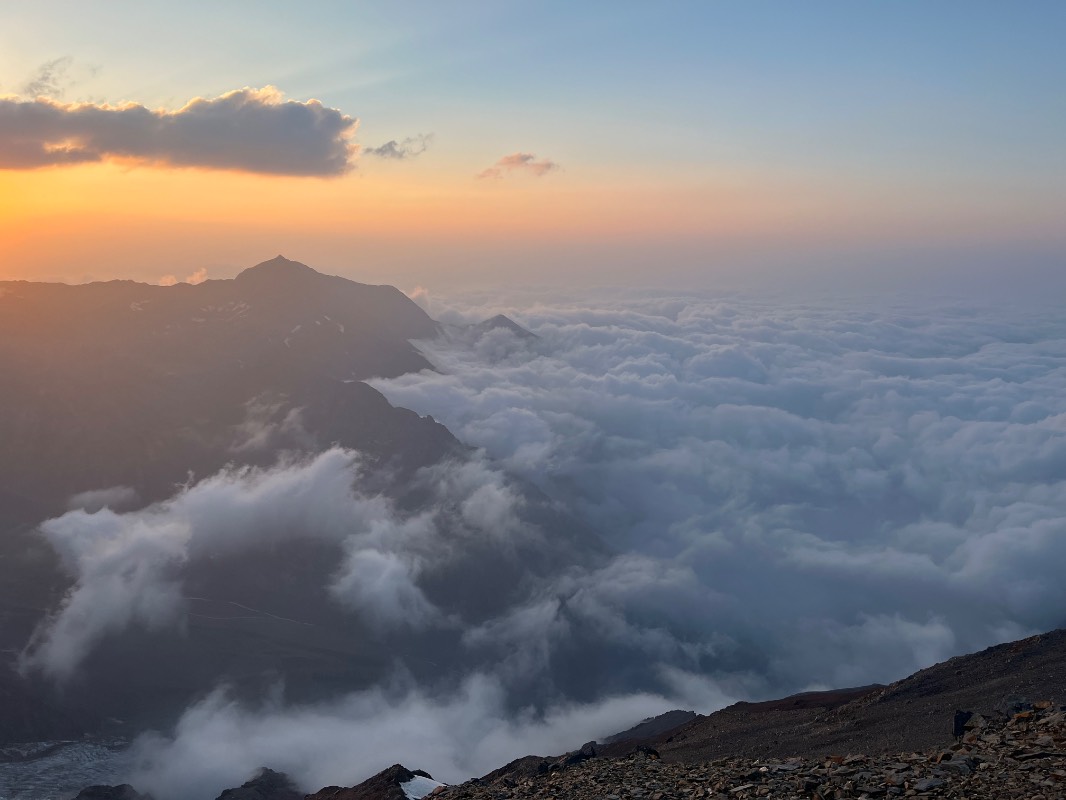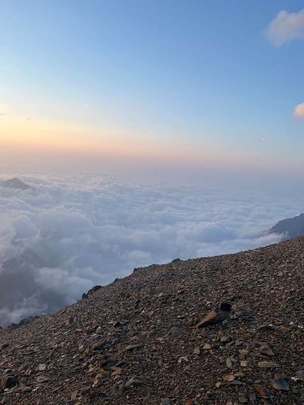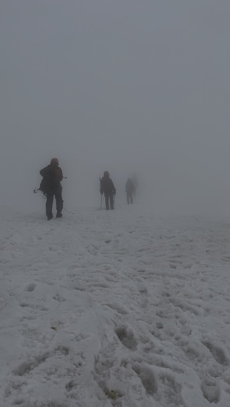 Сам штурм на вершину поначалу был простым, на середине затянуло облаком всю гору.