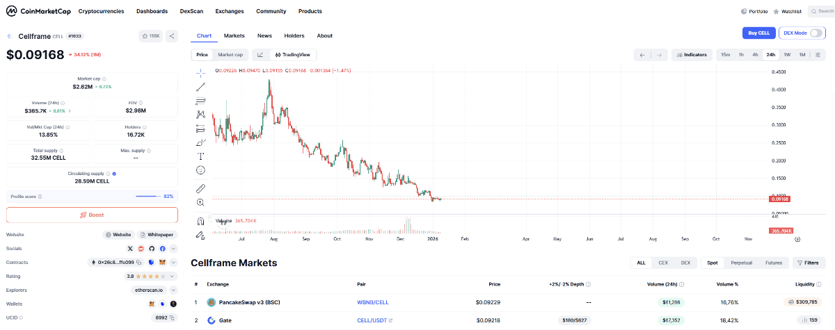 Cellframe, упоминание которой было и в соответствующей теме. Очень удивило то, что этот проект имеет русскоязычные корни. Тут меня в первую очередь интересовал сам токен, который на данный момент стоит копейки, и судя по всему, выглядит весьма перспективно в долгосроке