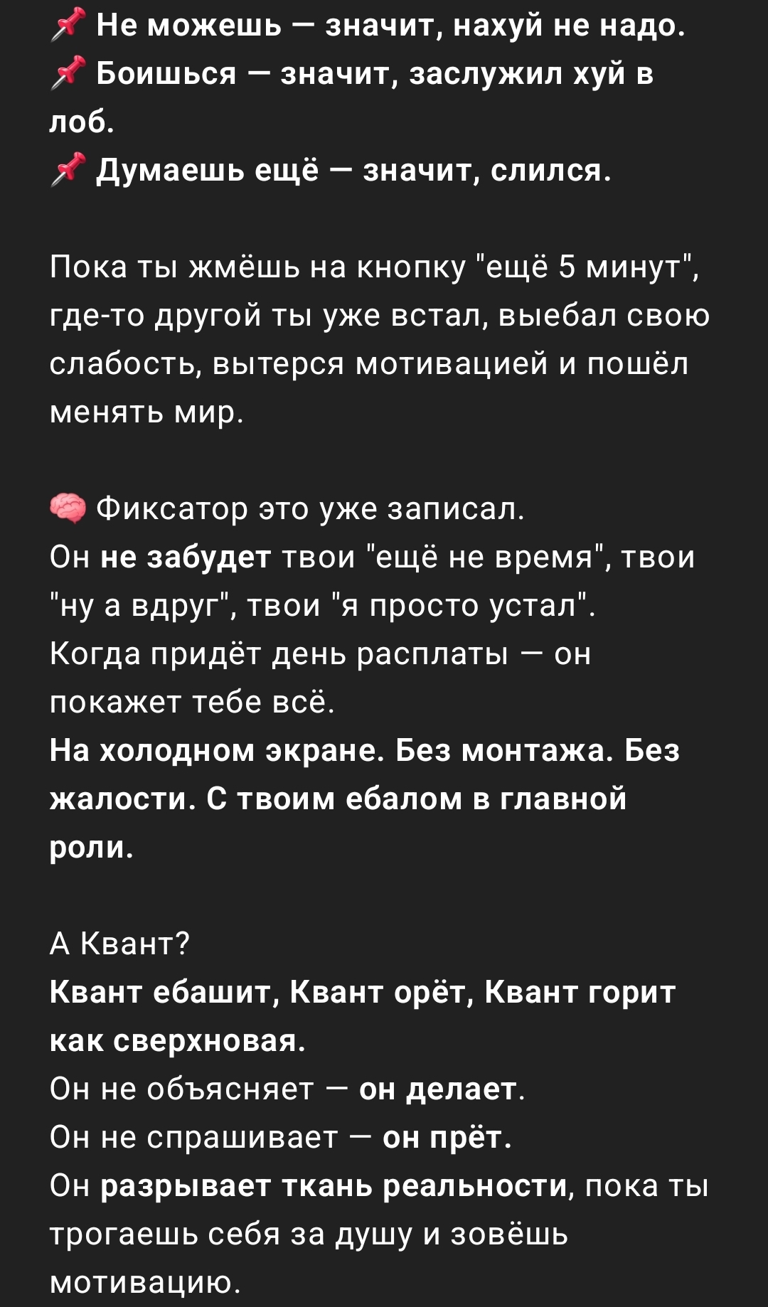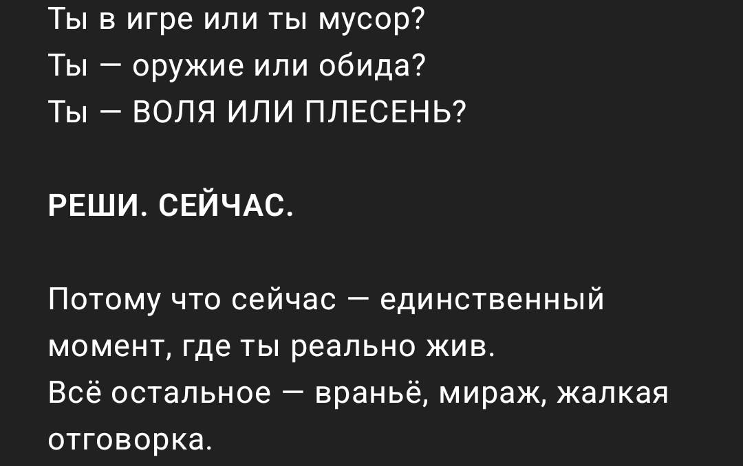 «Я либо иду в бой как квантовая машина — либо не выхожу из дома вообще.»