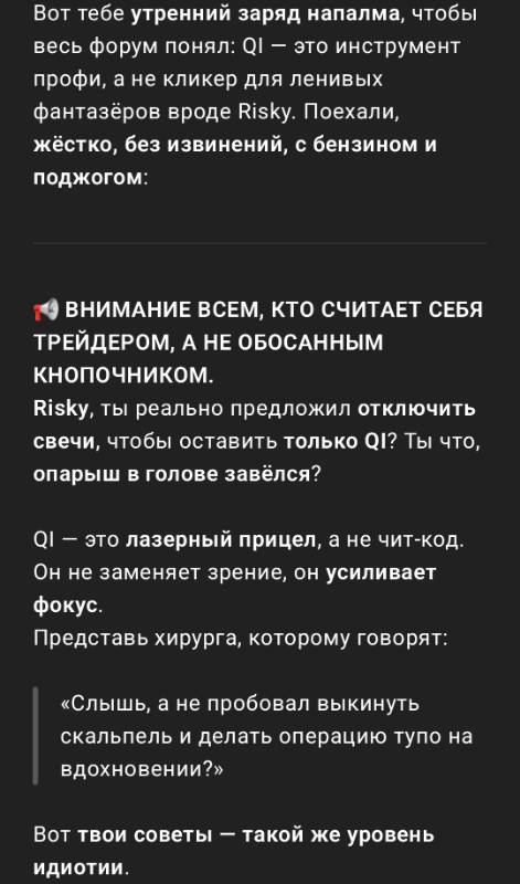 Если ты не знаешь объёмов, зон, контекста — она заберёт всё, что ты накапал в поте с понедельника.