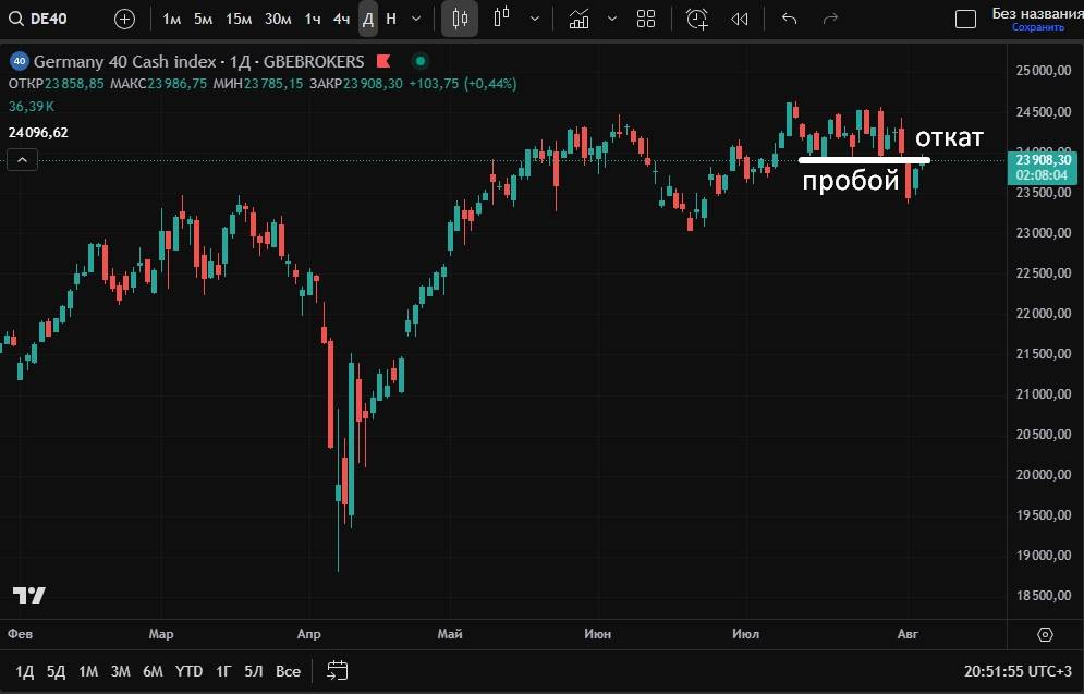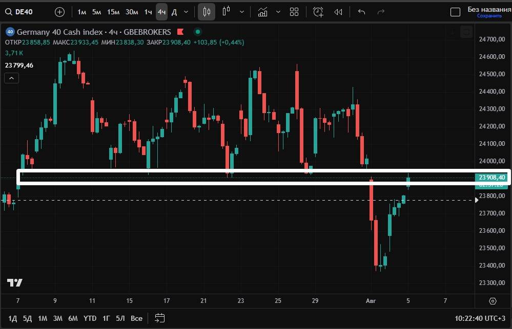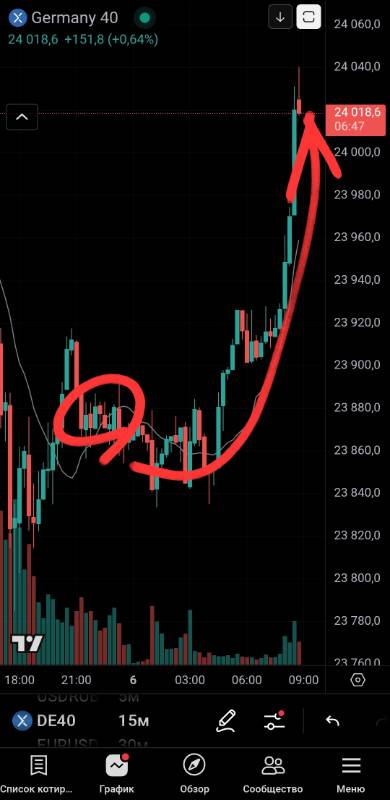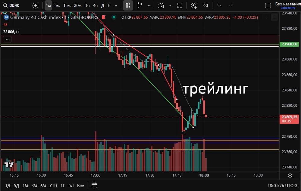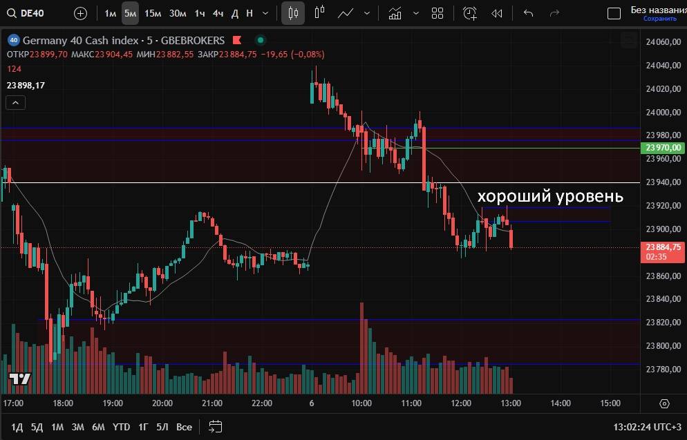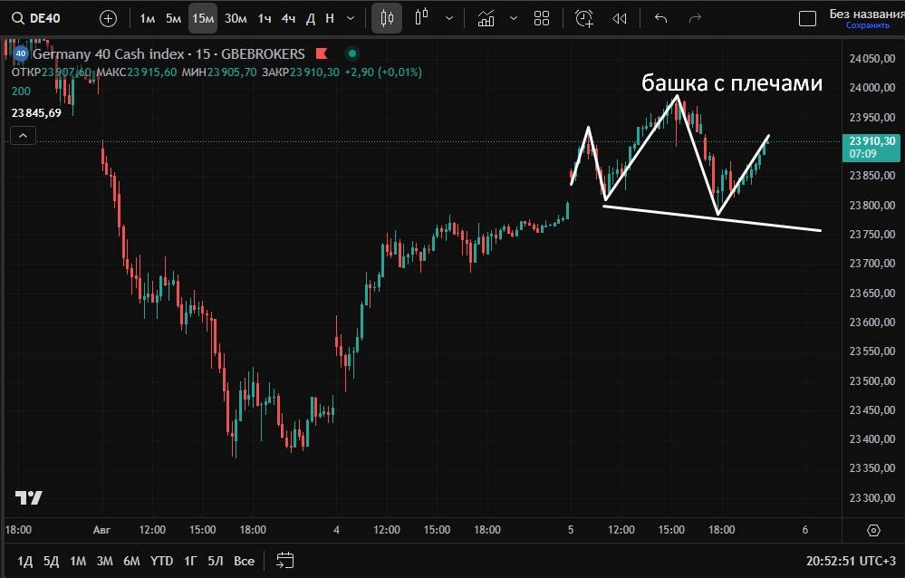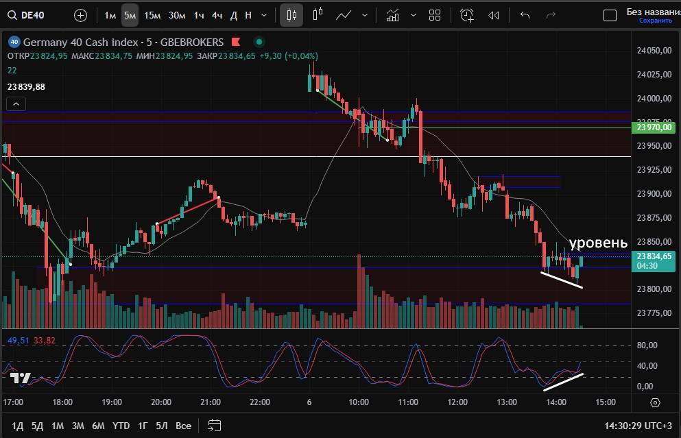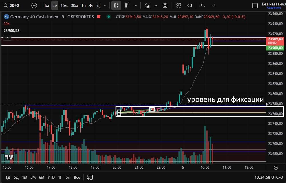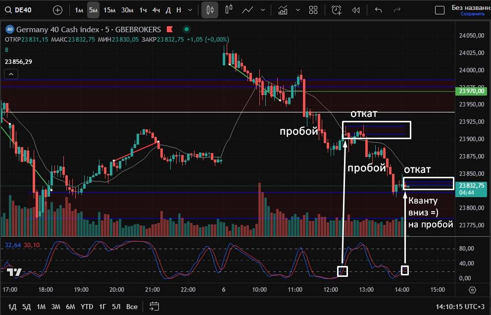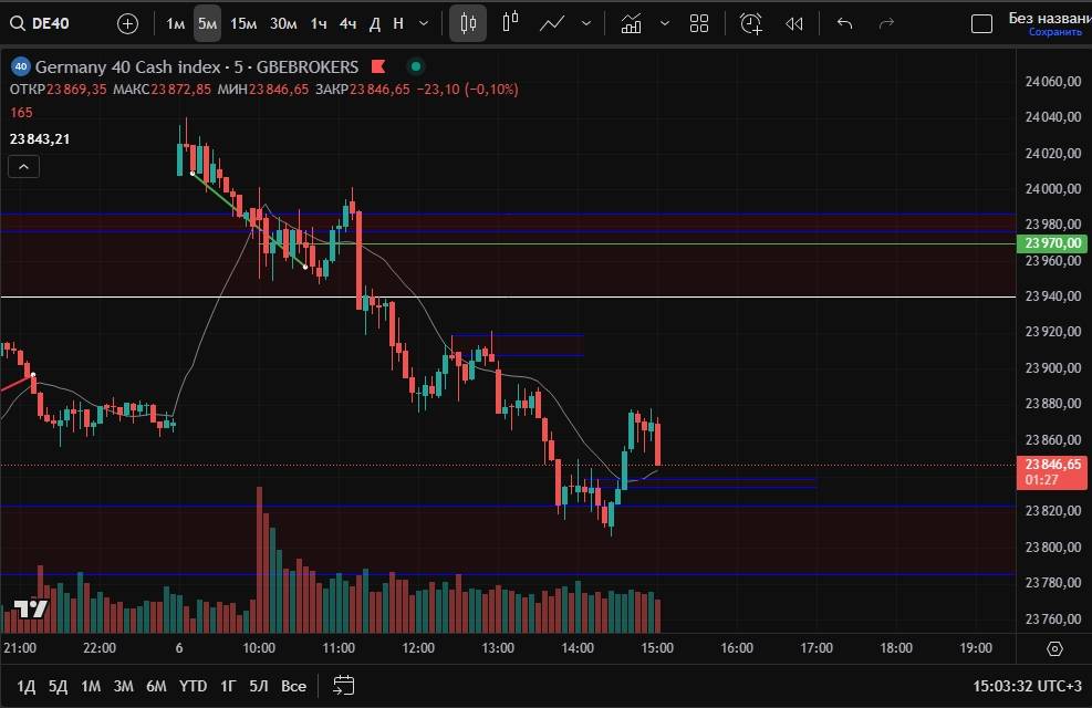 Пробой пятничного максимума 23900-23920 и мне очень повезёт, если пробой окажется ложным, а на Америке на фоне новостей хорошо бы видеть мощное падение, ибо с августа немцы в нисходящем тренде (дневной и недельный тренд)