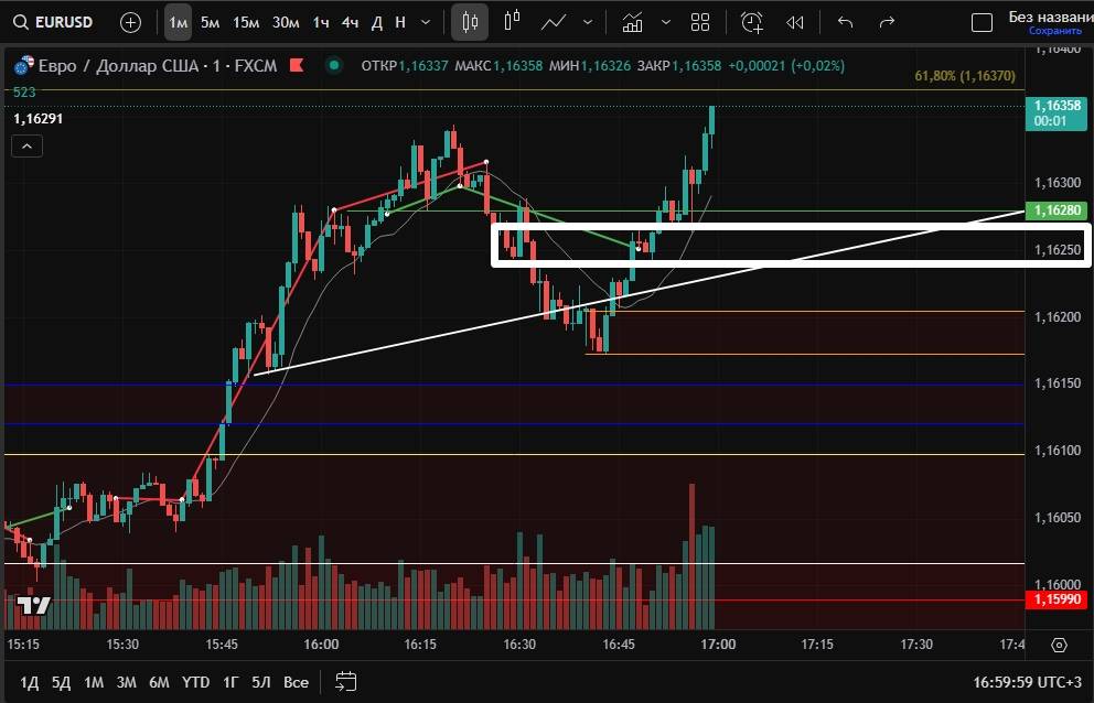 Учитывая, что на дневном был ложный пробой и сегодня весь день реализуется выход из пробоя что по сути усиливает рост