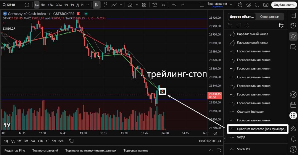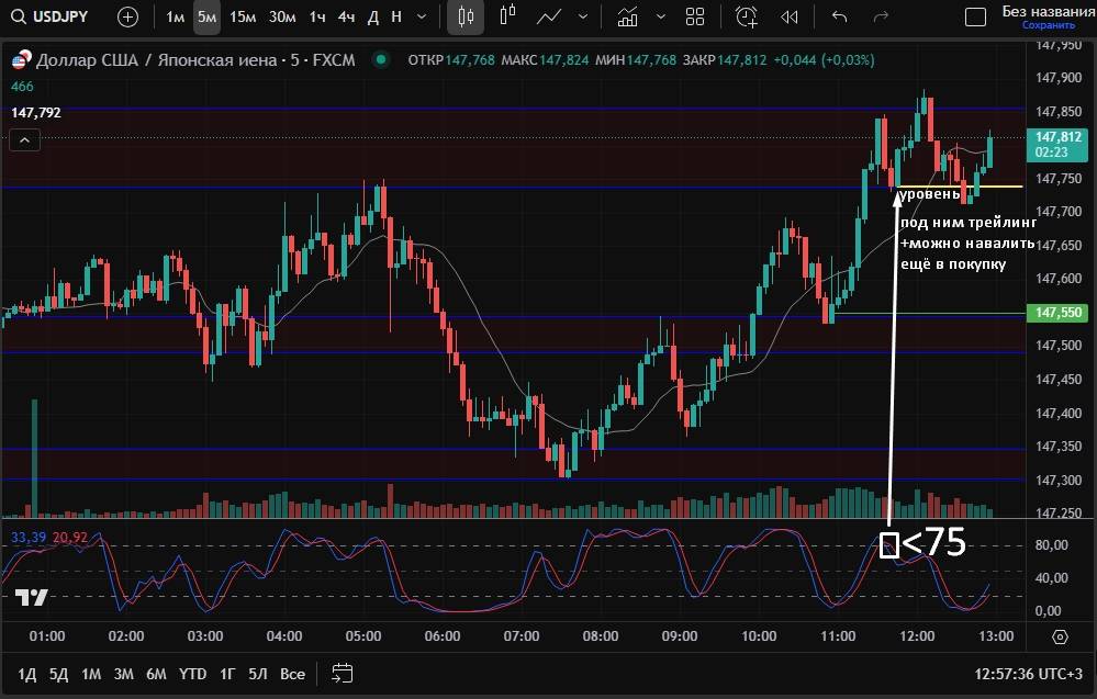 Касаемо покупки пока Stoch RSI 3 3 14 14 не выйдет из зоны перекупленности — позиция держится. Далее в большинстве случае определяется четкий уровень
