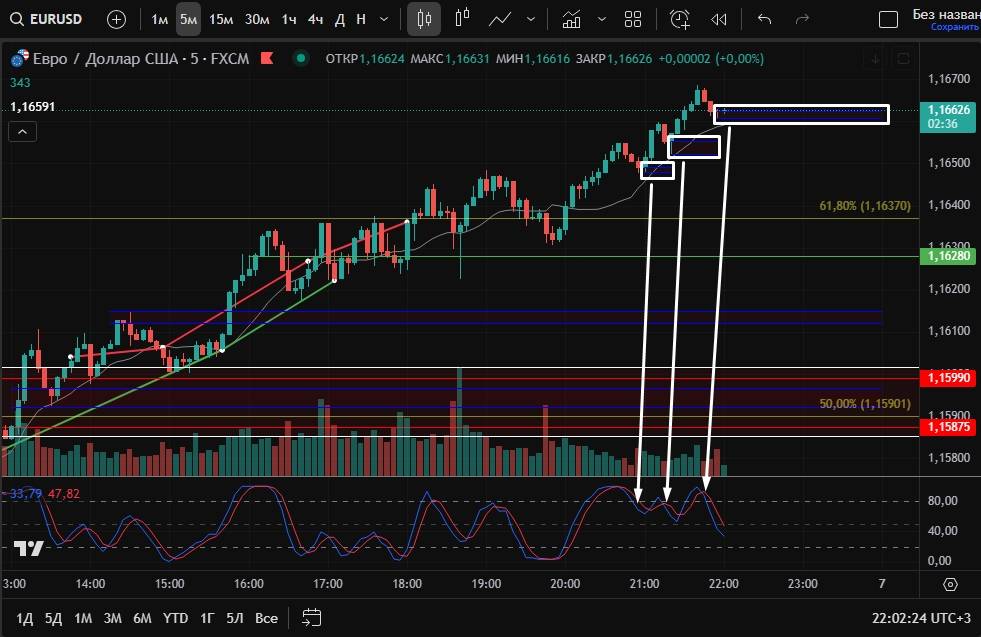 1)До открытия Европы/Америки отмечаешь внутридневные ключевые уровни п/с (иногда между ними бывает локальный уровень, он менее значимый, но порой играет роль)