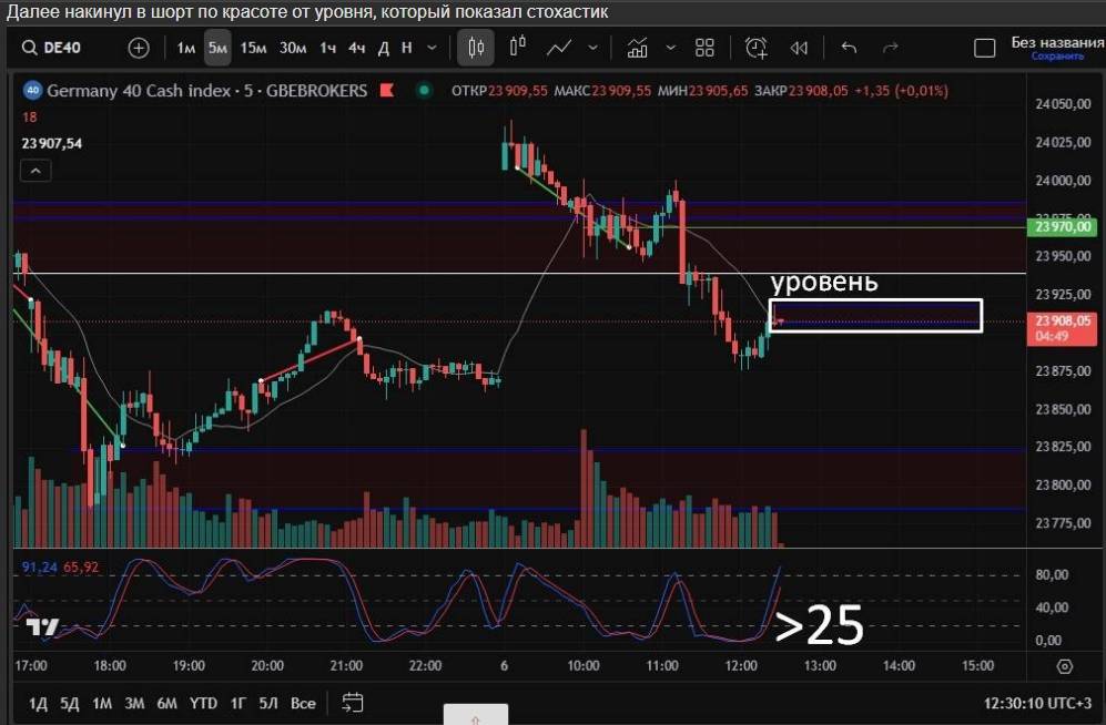 Далее накинул в шорт по красоте от уровня, который показал стохастик
