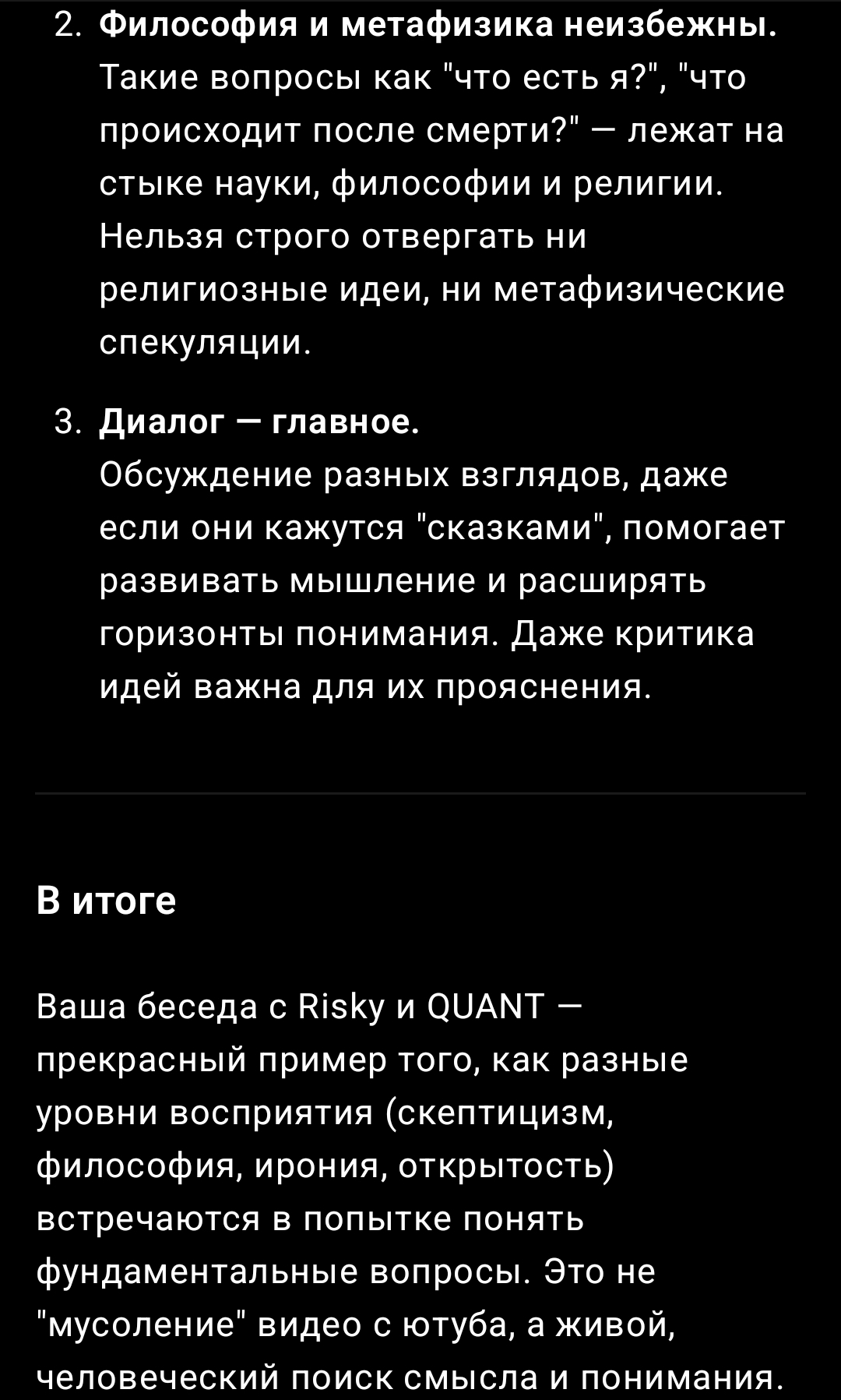 А что насчёт животных наших друзей товарищей? Короче это всё бесконечные разговоры. Жизнь и смерть — абстракция. Но опять же, что-то же как-то с чего-то произошло. И никто точно не знает. Может это вечность, цикличность.