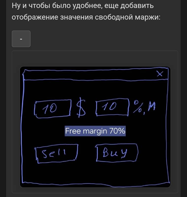думал, что тебе надо, чтобы ты просто вместо поля ввода «риск в $» использовал «риск в % от маржи», и все. А ты хочешь и риск в деньгах, и одновременно риск в % от маржи. Это можно, но мне придется отменять основную логику самого советника.
