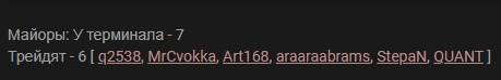 Майоры: У терминала - 33 Трейдят - 3 [ Automador, promoprivate, Flyknit ] |