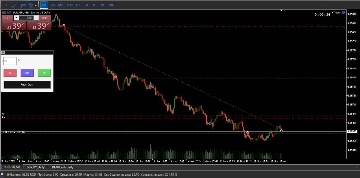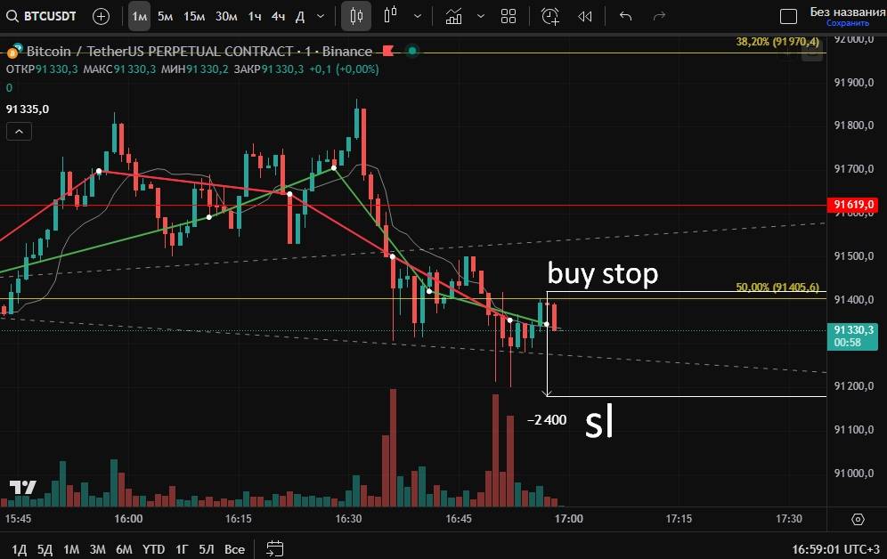 А сигнала до сих пор нет и уже пробился m15 внутридневный локальный уровень от которого планировалась покупка на тесте