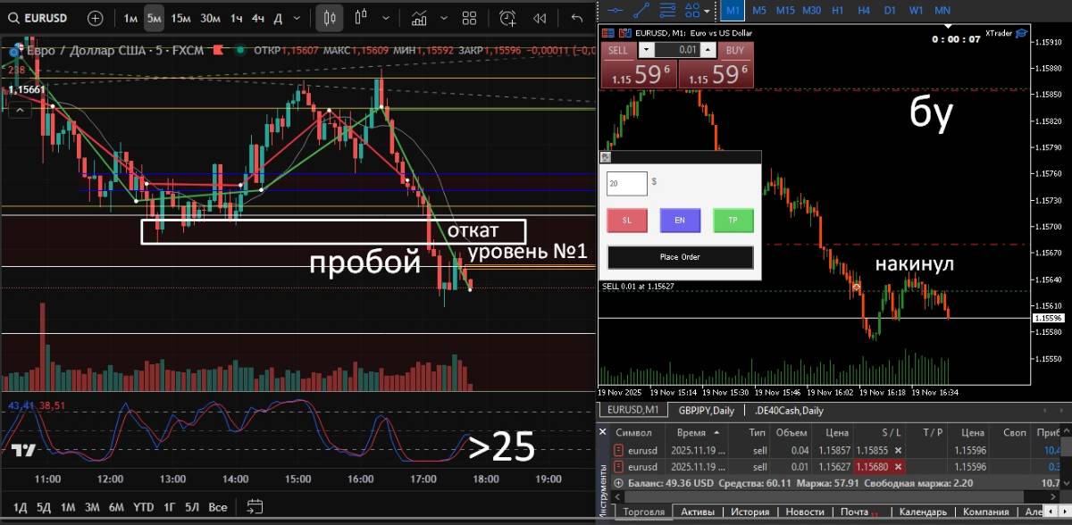 Первая сделка в бу, вторая от уровня накидывается сейчас, а стоп над уровнем