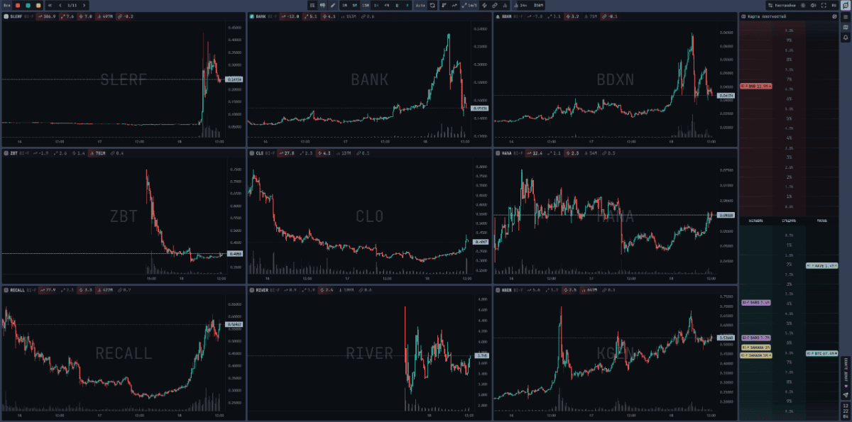 ОригиналЯ мониторю все пары что есть на бирже и подходят под мои критерии, для этого использую скринер и в нем же делаю рисеч утром и перед открытием америки. Вот как он выглядит