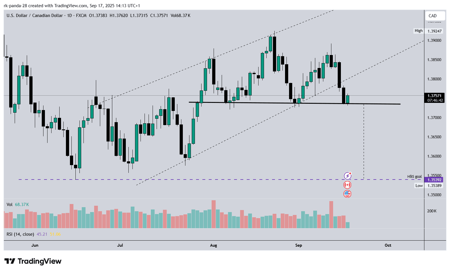 пока цена двигалась, нарисовался восходящий клин.. внимательно следил за ним, ожидая пробой наверх, и отработку цели по дневном тайсфрэйму..