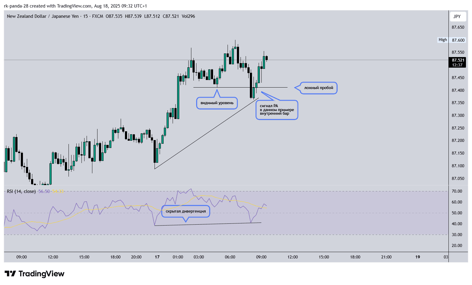 откат пошел, но откаты всегда проходят по-разному, в этот раз он прошел с формированием новых минимумов, что может перейти в ложный пробой или в более затяжную коррекцию перед возобновлением движения.. дождался подтверждения бычки