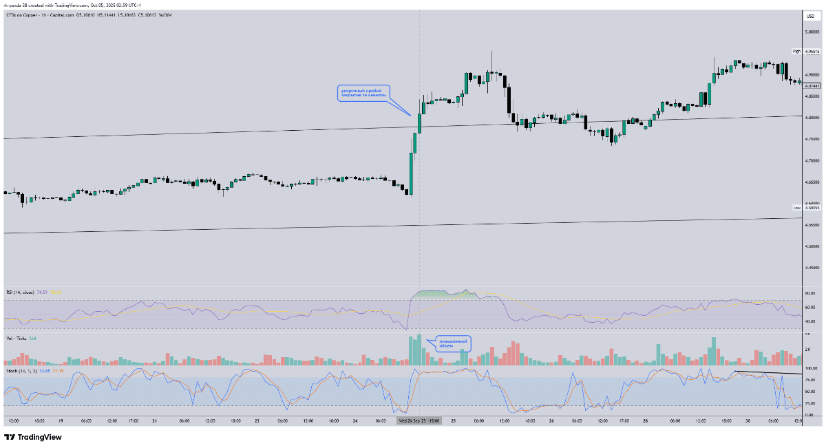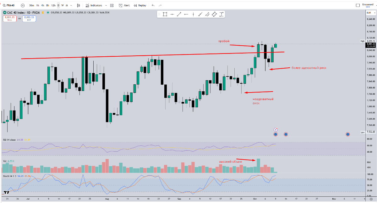 пробой был со всеми сигналами на покупку: сильное уверенное движение цены, закрылись за каналом, максимальный объем пришелся именно на пробойную свечу (покупатель проявился), все осцилляторы, показывающие моментум цены, подсказывали, что моментум явно бычий