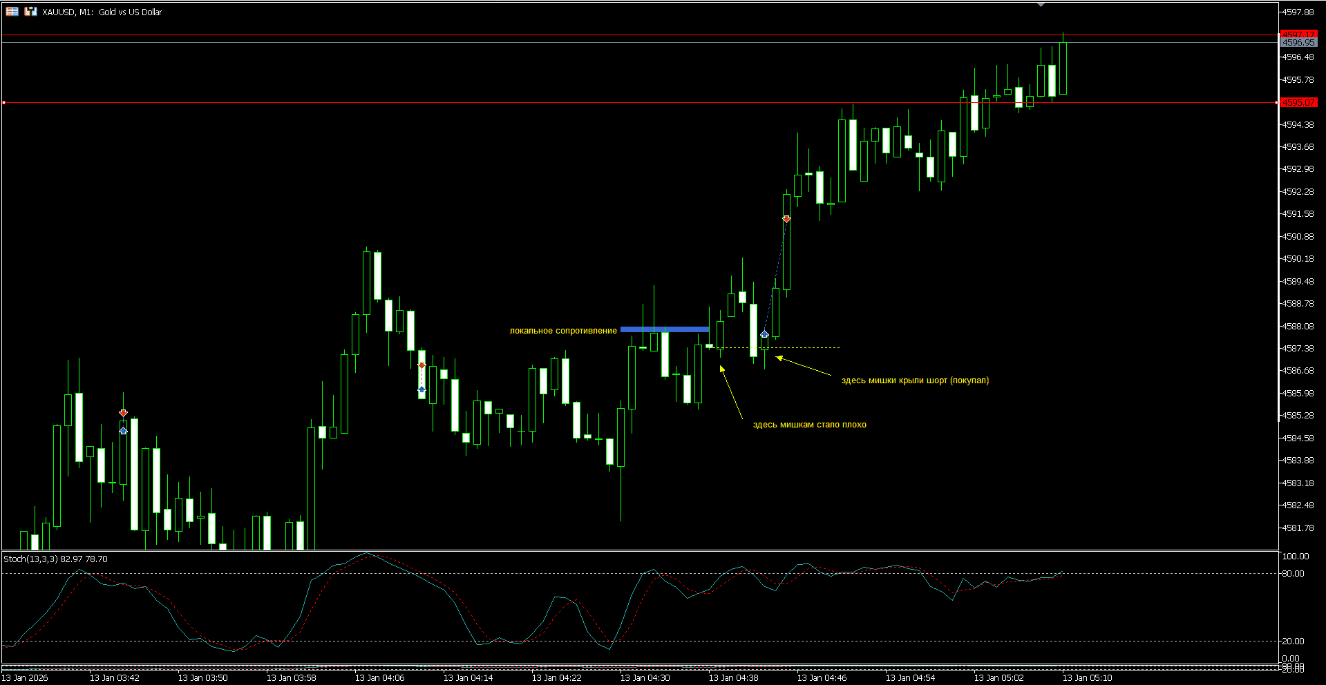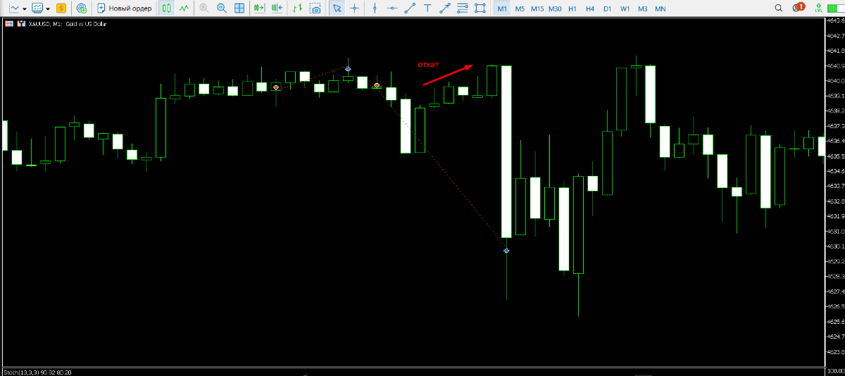 входить на данном пробое сразу не стал, так как единственное понятное для меня место, куда можно было поставить стоп, давало хреновый риск реворд.. решил дождаться отката и поискать точку входа с приемлемым RR..