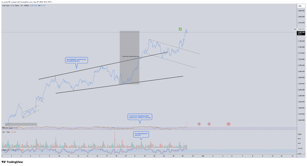 на дневке был отмечен восходящий расширяющийся клин, огромный такой, с января 2023 года.. а внутри также рисовался восходящий расширяющийся клин: