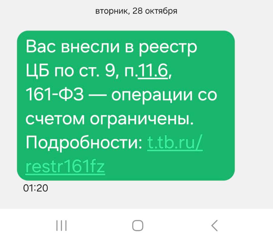 Потом стали приходить смс от них, о том, что продолжение сотрудничества невозможно на основании какого-то пункта в договоре и т.д. Я погуглил всё это хозяйство и стало понятно, что это блок по 115.