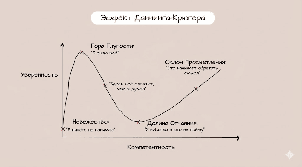 По презабавнейшей иронии у людей малообразованных сплошь и рядом Даннинг-Крюгер — они считают себя по дефолту умными и всесильными. Они, банально, сидят на Глупой Горе и там очень комфортно сидеть... и крайне больно с нее падать. Поэтому они к краю попросту не подходят, часто всю жизнь