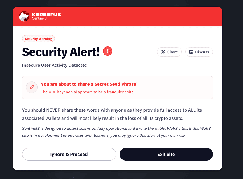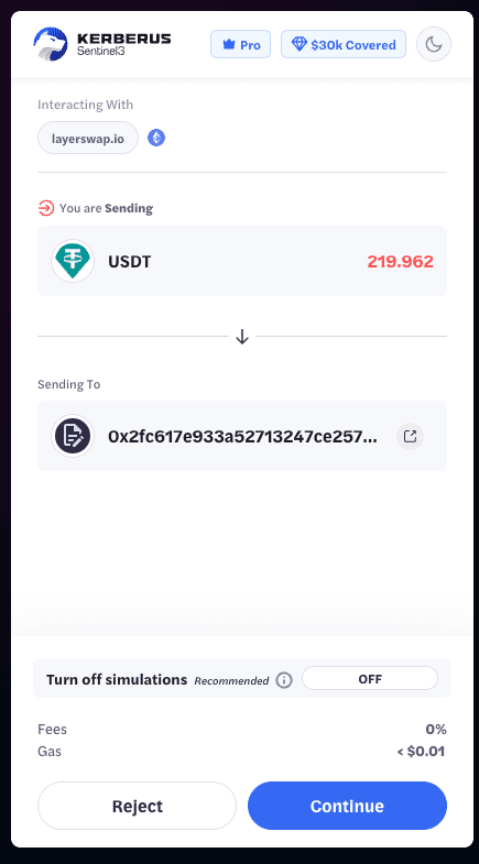 Далее при любом действии (скажем, ты чета меняешь в Юнисвапе или где) сначала быстро и прозрачно мелькает Kerberus, он проверяет все ли четенько и если да — тогда работай дальше
