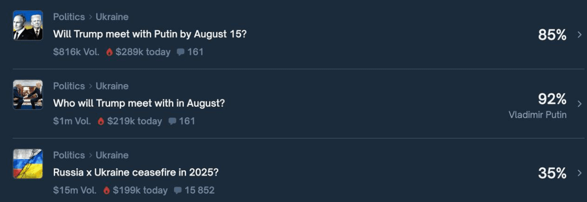 А поскольку полимаркет — это рынок, то как и все остальные он подвержен панике/жадности и очень бодро реагирует на любые новости. И % вероятности — это просто рыночный сентимент. А поскольку толпа не всегда читает вообще тупо самое важное что там в условиях может быть написано (те что под ордер буком) — это создает прецедент для появления очень интересных рынков с классическими no-brainer входами, ибо р/р очень вкусный. Грубо говоря — интересные ассиметрические возможности.