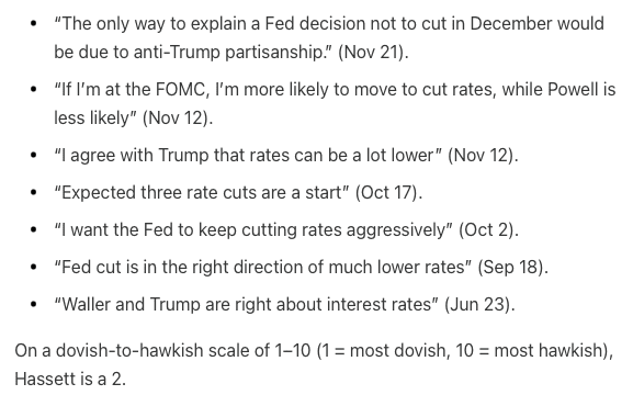 Народ уже активно его анализирует. По шкале ястреб — голубь, Хассет это 2 из 10 — самый мягкий чел из всех возможных