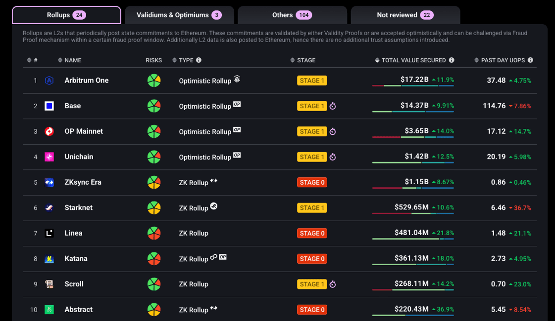 Смотреть не только Rollups но и Others — особенно этих — ибо там лежит несколько потенциальных гемов, которые именно L2Beat не учитывает в основных списках