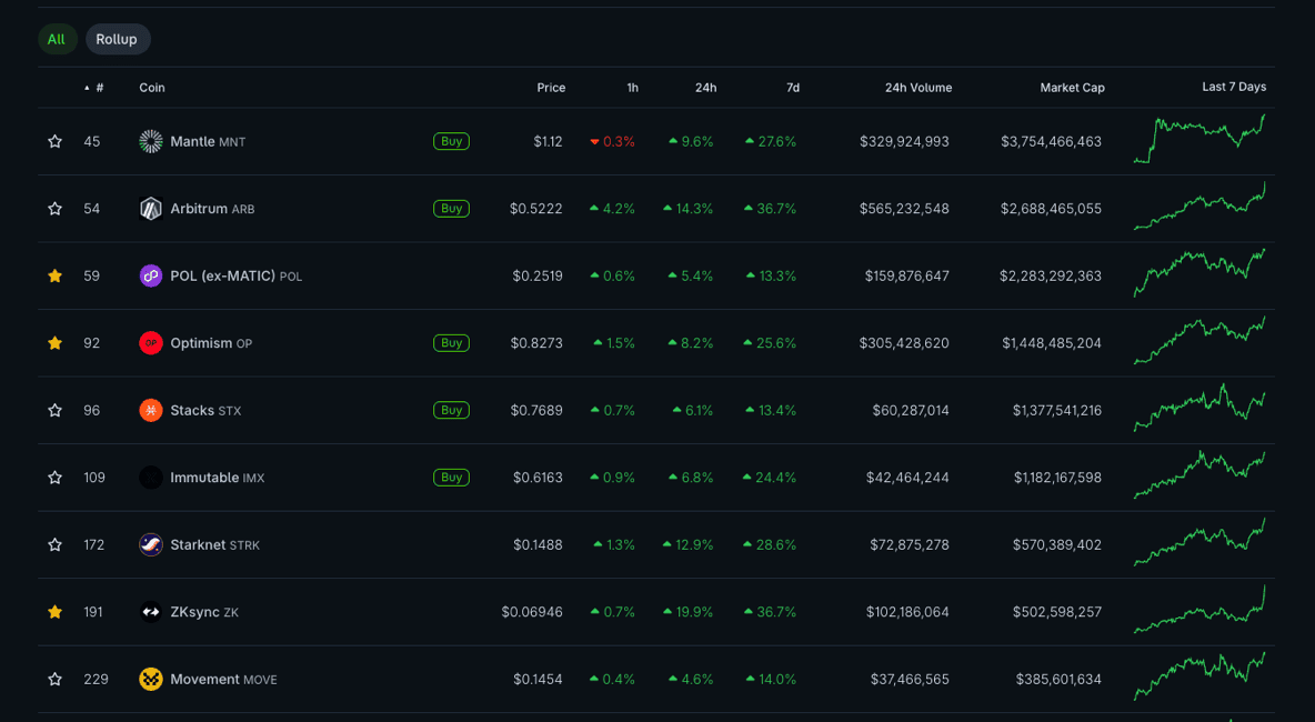 Поскольку начинается ETH волна, в которой пациент может дойти до 10-12к, рост всей экосистемы неизбежен и уже, собственно, происходит. Почти у всех сетей L2 есть свои токены, многие — недооценены просто в сосиску, так что это готовый портфель