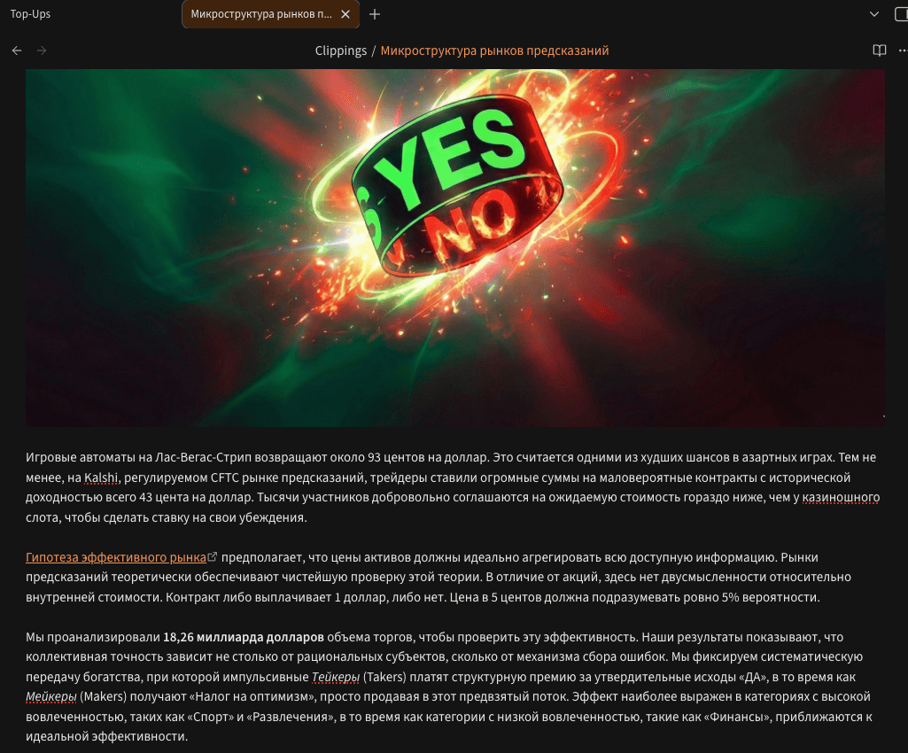 Скажем у меня есть книга «The Principles of Banking», я сижу и читаю про клиринги, discount window lending и прочий стаф, я делаю себе пометочки в приложении BookFushion из айпеда — сохраняю термины, сохраняю какие-то мысли и...официальный плагин для BookFusion перетаскивает мне эти заметки в Obsidian папку, далее я могу опять таки — цитировать эти заметки уже в каких-то своих текстах.