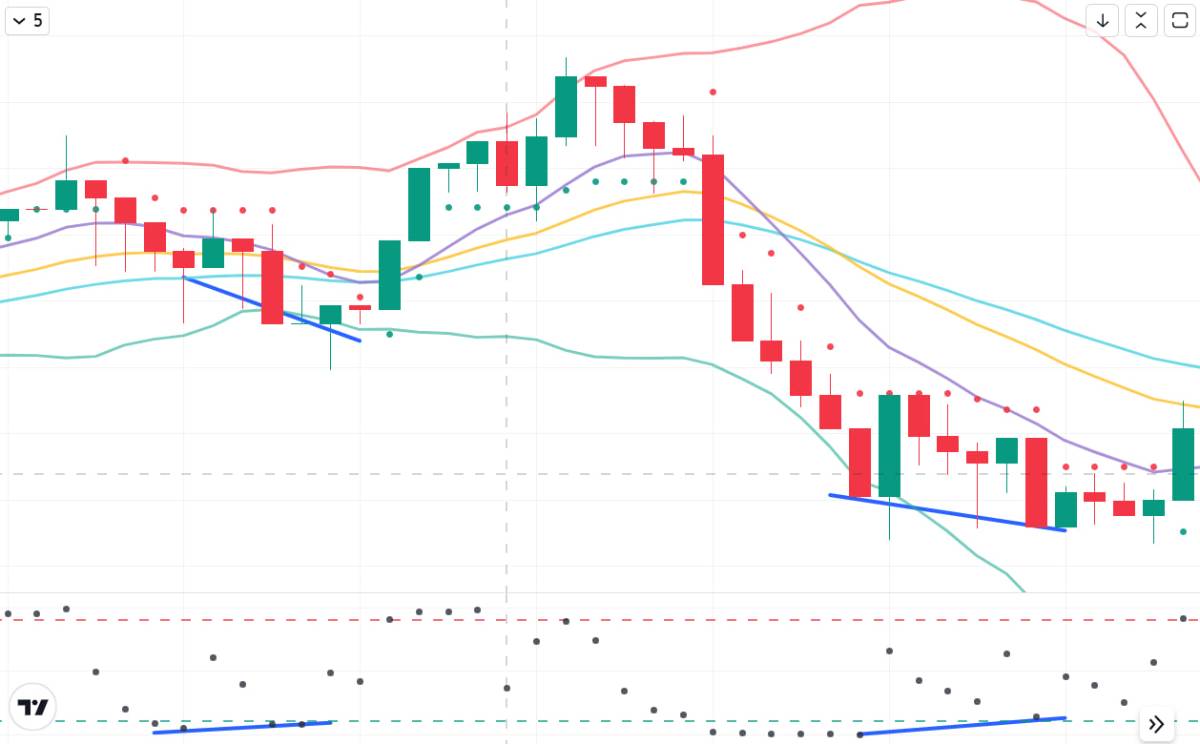 Если говорить про RSI дивергенции, то они обычно супер-хорошо работают для коротких таймфреймов. У меня на 5 минутке RSI дивергенции практически всегда отрабатывают. Но сначала было сложно на ходу распознавать их, только уже