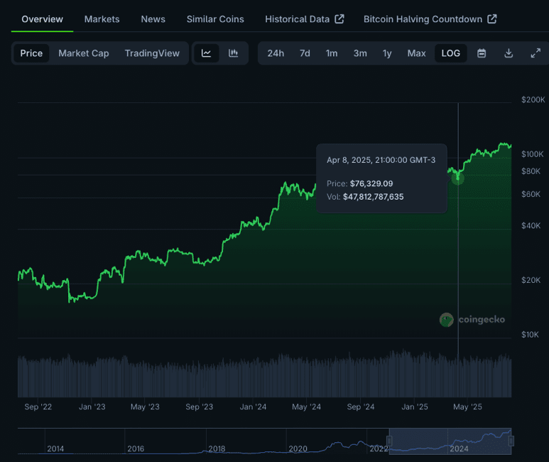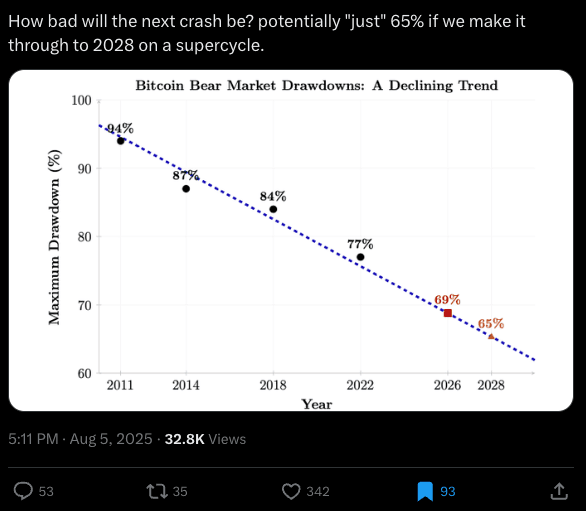 ВНЕ зависимости от цены биткоина, на каждом цикле — без исключения — его доля в общем крипторынке падает. Уже никогда не будет времени — никогда — когда биткоин будет составлять хотя бы половину крипторынка