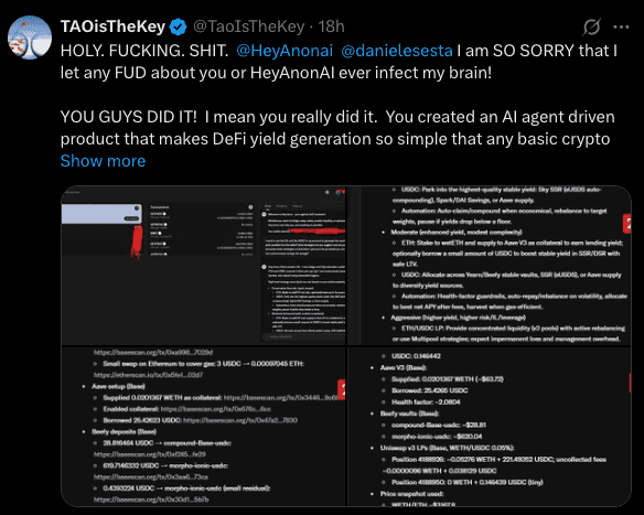 **Комментарий участника:** Будет здорово иметь вкладку «портфель», где видно все стратегии, действия, позиции. **Ответ Дэнни:** Да, ты можешь попросить HeyAnon показать виджет с портфелем — это уже реализовано. Скоро всё это появится в **новом чат-интерфейсе с динамическими блоками и панелями**.