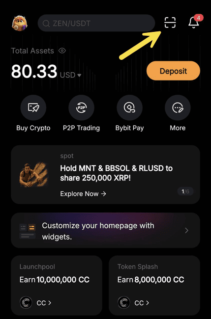 И вот у тебя в Байбите просто на счете лежат USDT. И нет карты, а она нахуй и не нужна. Ты нажимаешь значочек QR, сканируешь код и через 5 сек свершается хайтек чудо